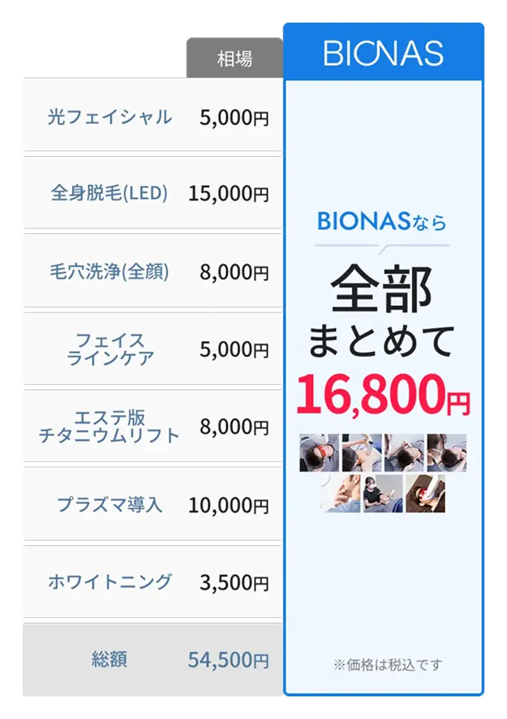 BIONASなら、人気の美容ケアが毎月定額で通い放題!