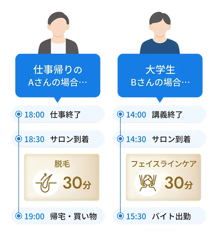 仕事の合間・学校帰り・予定のスキマ時間にサッと通える“タイパ最優先”のサロンです。