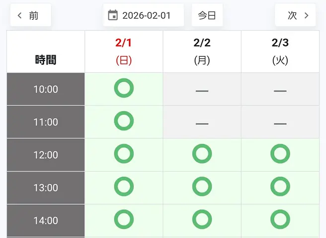 予約はどのようにとれますか?アプリ/WEBから24時間いつでも、当日予約も可能です。空き枠がリアルタイム表示されるので、当日の空いた時間でもご予約が可能です。